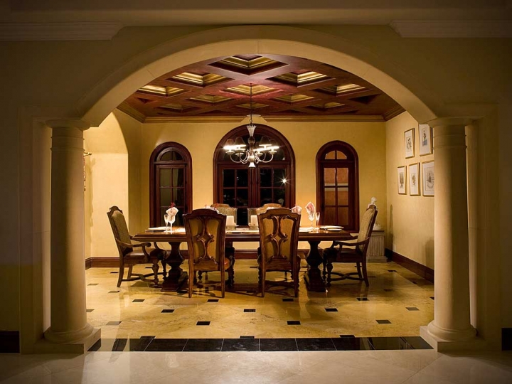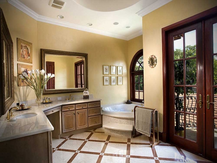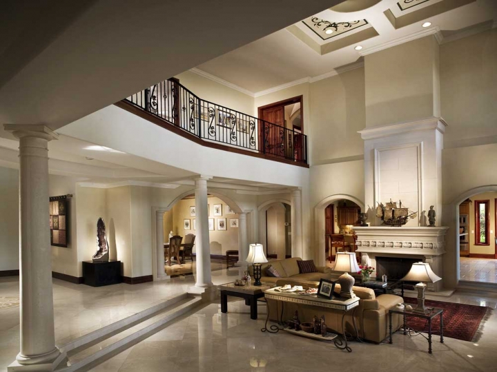 First Floor: A baronial arched entry presents the 2-story grand Foyer with a stunning 23 foot diameter cupola, with an Onyx medallion and polished marble flooring, which continues throughout this level. An ornate ironwork balustrade accents the majestic Navona marble staircase. A wrought iron door opens to the wine cellar, which will hold your favorite wines.