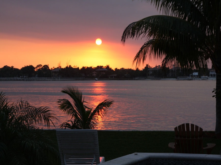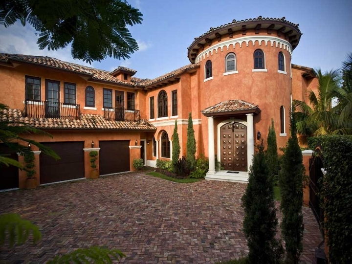 This stately Tuscan villa captures spectacular waterway views in a lushly landscaped setting. The Chicago brick circular driveway, conveniently appointed with an electric gate for security and privacy, creates an elegant Old World atmosphere, which continues throughout the five-bedroom, five and a half bathroom residence. Meticulous attention to detail is shown in fine appointments including high shine marble throughout the first floor, Venetian plaster finishes, a custom stone fireplace allowing you to enjoy either natural wood or the convenience of gas fire, premium wood flooring on the second floor and rich mahogany hurricane proof doors and windows throughout.